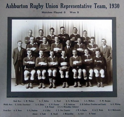 The Ashburton County Rugby Union teams of 1929 and 1930.